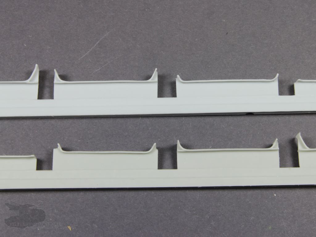 PSM manufactures the bridge from several components, almost like the original. This consists of the roadway, side panels, girders and several small parts. The dimensions are consistent. The roadway has a very well-represented anti-slip coating and other details such as the guiding channels or even the small parts such as springs, wheels and levers, are beautifully detailed. Located on the side panels of the bridge are the pegs series for advancing the bridge by the cantilever arm which are added separately. Incredible detailing, casting, and no shortcomings. The fit of the parts is also good. Generally speaking, the bridge itself is a kit within the kit.