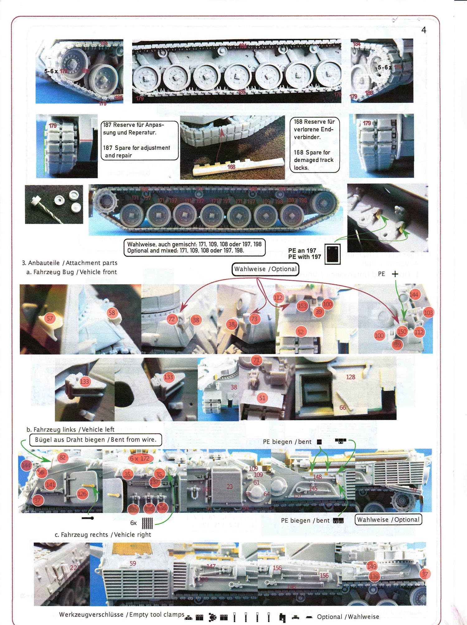 The instructions consist of nine colour photocopied pages standard letter sized paper. Typical of PSM instructions they provide actual images of the parts being assembled as well as text in German and English indicating specific assembly points.