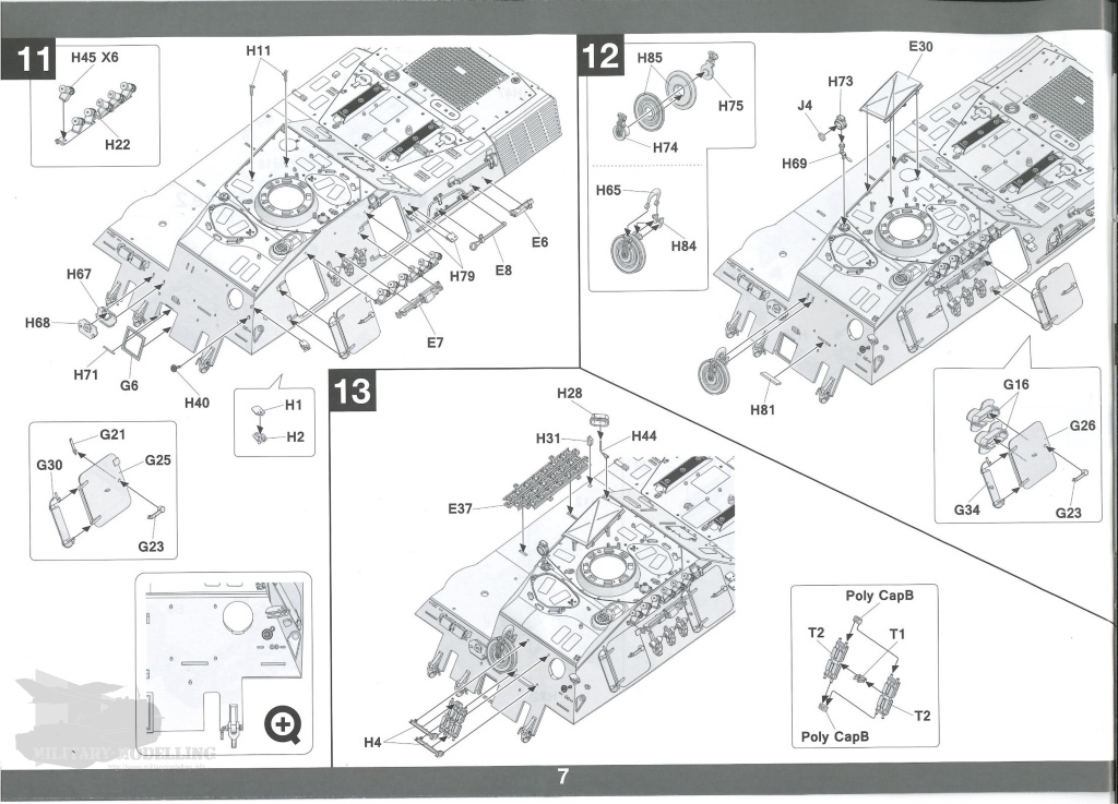 Be careful with the drive sprockets. Takom has added two extra sprockets to the kit. Both variants are great and convincing, but they differ in the number of bolts on the hubs. The sprockets with the 8 bolts are the right choice for early versions of the vehicle, but 15 bolts were used later on, from 1986 onwards.