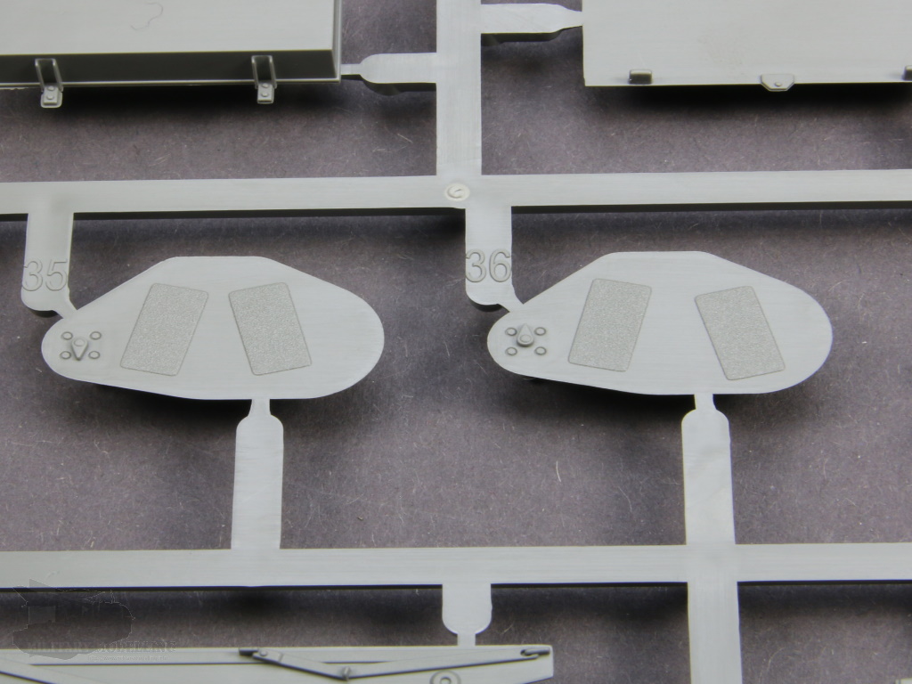 The side doors and the hatch covers are individually presented, as already described. However, the visible ejector marks on the inside of the doors are very ugly. Thus, all hatch/door openings can be presented either closed or open. Great for adding a crew. Open side doors definitely pay off if you install the interior of the new Perfect Scale Modellbau interior set, which is available as an accessory.