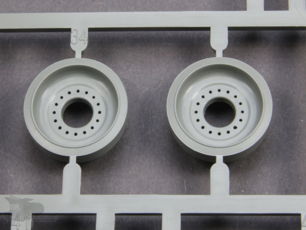 The road wheels in the kit are old acquaintances. As already mentioned, the sprues are identical to those in their Gepard kit, presented twice. The details of the components leave nothing to be desired, as the wheels are also detailed on the back, though not strictly accurately but close enough for most.