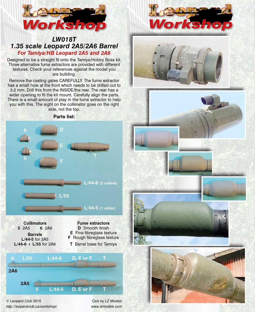 Designed to be a straight fit onto the Tamiya kit. Three alternative fume extractors are provided with different textures. Check your references against the model you are building.