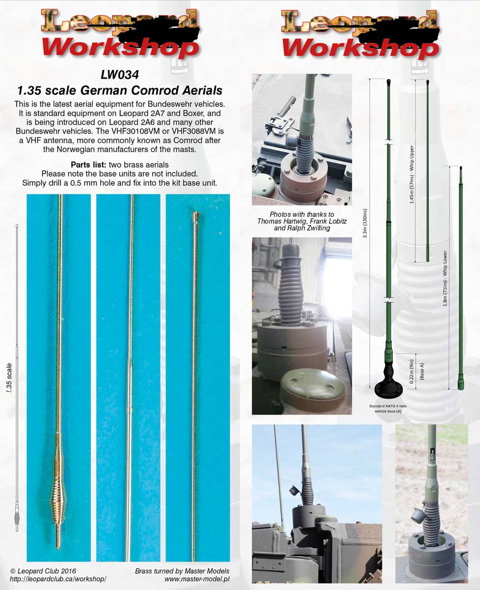 This is the latest aerial equipment for Bundeswehr vehicles. It is standard equipment on Leopard 2A7 and Boxer, and is being introduced on Leopard 2A6 and many other Bundeswehr vehicles. The VHF30108VM or VHF3088VM is a VHF antenna, more commonly known as Comrod after the Norwegian manufacturers of the masts.